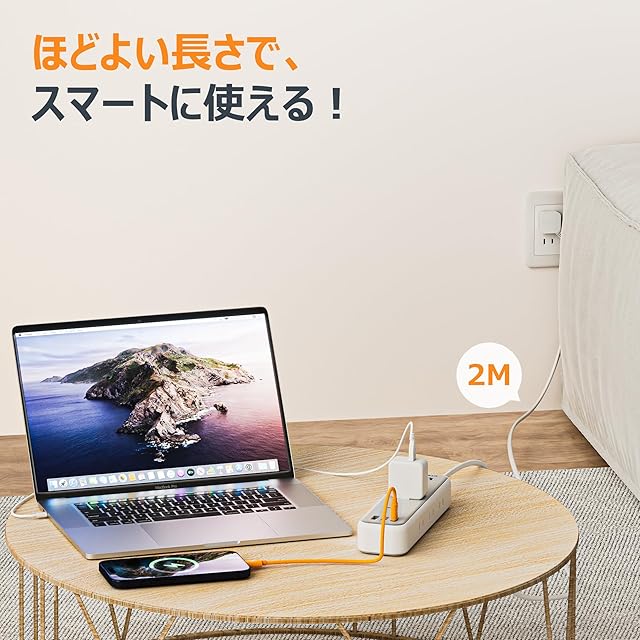 「使用者の便利に配慮」:この延長コードは日本のために研究し、設計されています。45°薄型プラグを採用して、延長コードは狭い隙間にも配線しやすい。使い勝手のいい2mケーブルを採用し、コンセントから少し離れた場所でも利用できます。家庭、オフィス、会議室、パーティーなどにも大活用できます。
