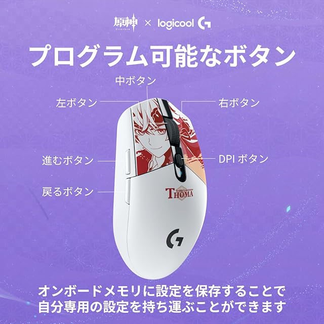 Logicool G 原神 トーマ 特別モデル ゲーミングマウス G304 LIGHTSPEED ワイヤレス マウス G304-GE-TH 軽量 HERO 12Kセンサー 6個プログラムボタン 250時間連続使用可能 ホワイト 無線 ゲーミング PC windows mac 国内正規品 | TREND DESIGN 家電専門店