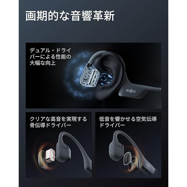 デュアルドライバーによる優れたサウンド:Shokz DualPitchを搭載し、オープンイヤーオーディオのルールを書き換えるShokzのまったく新しいフラッグシップヘッドフォン、OpenRun Pro 2が登場。この先進的なテクノロジーは、骨伝導スピーカーと空気伝導スピーカーを見事に組み合わせ、クリアで力強い音質をお届けします。