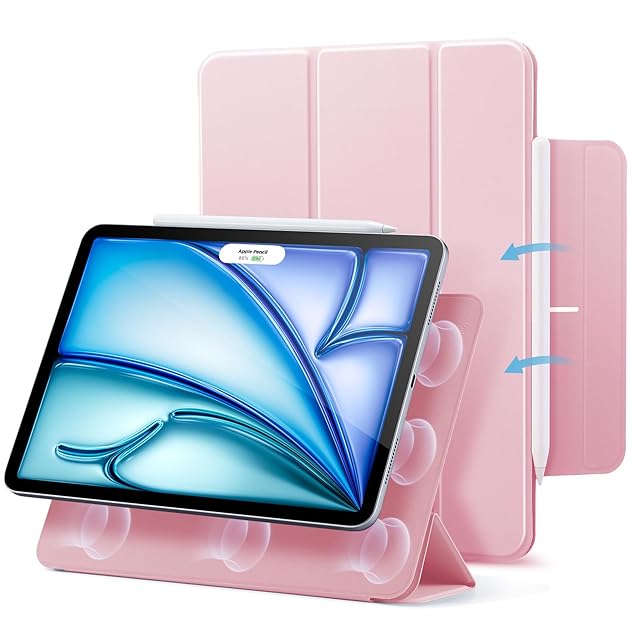 ESR iPad Air 11インチ ケース (M3/M2、2025/2024) iPad Air 第5/4世代 ケース(2022/2020) iPad Pro 11 ケース(2018)専用 強力マグネット吸着式 スリムな三つ折りスタンドケース Pencil Pro/USB-C完全対応 自動ウェイク/スリープ 耐久性保護 Reboundシリーズ ピンク