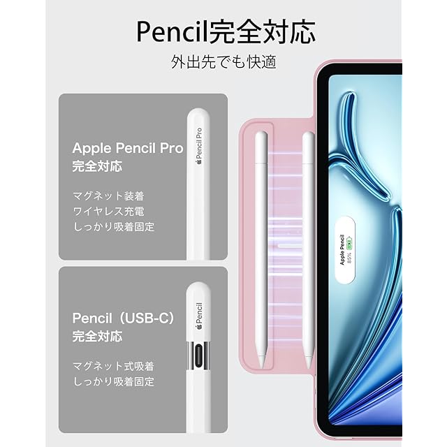 【Pencil Pro&Pencil (USB-C)対応】:Pencil Proへ完全対応かつ、磁気充電用の側面の溝と、Pencilをしっかりと固定するマグネットクラスプを備えています