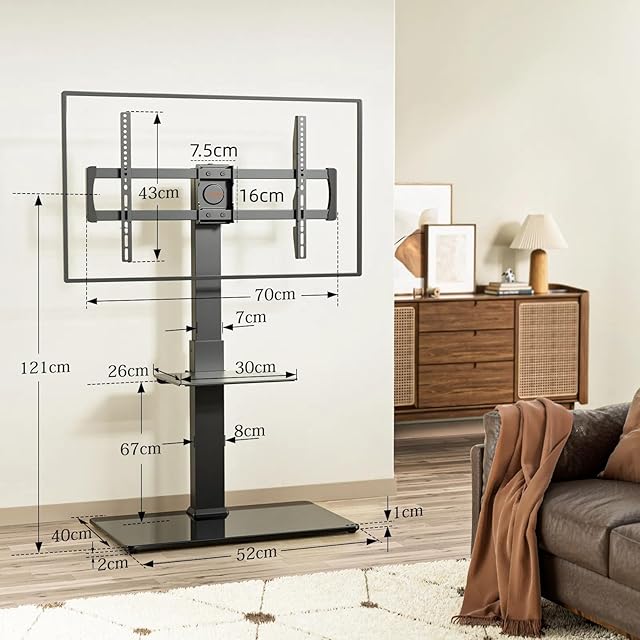 【簡単に高さ調節&左右首振り】Perlegear 壁寄せテレビスタンドは、5cmピッチで6段階に高さ調節可能:支柱部分の突起を気軽に引っ張ると自由に高さ調整できます。リビングやベッドサイドなど設置場所に合わせて、見やすい位置に固定可能です。左右それぞれ35°回転可能:角度を簡単に変えられて便利。部屋のさまざまな場所からテレビを観られ、快適に視聴できます。組み立てについて:事細かに書かれている日本語取説があり、部品も個別にビニールで梱包してあるので、成人男性であれば説明書通りに進めると30分あれば完成できます。