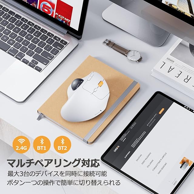 商品名:ProtoArc トラックボール マウス ワイヤレス Bluetooth/2.4GHz両対応 3台同時接続 無線 マウス トラックボール 静音 親指 Type-C充電式 大容量バッテリー内蔵 5段階DPI調節可能 進む/戻るボタン搭載 Windows/Mac/iOS/Android対応(ホワイト・ブラック)
