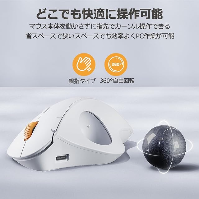 <b>商品特徴</b><br> ●人間工学に基づいて設計された手首に優しいトラックボールマウスです。<br> ●450mAhの大容量バッテリーを搭載しているので、1回のフル充電で最大70時間連続して使えます。<br> ●マウスの上部に戻る・進むボタンを搭載しており、Webブラウザの操作がスピーディに行えます。<br> ●左・右ボタンに静音設計を採用しています。<br> ●読み取り精度の高いセンサーが搭載されており、精確なコントロールが可能です。<br> ●用途に合わせてカーソルスピードを200/400/800/1200/1600の5段階に切り替えて使えます。<br> ●電源ON/OFFスイッチ付きで電池消耗を防止できます。