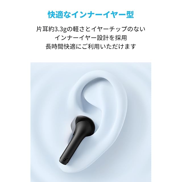 インナーイヤー型でも力強い低音: 13mmドライバーとAnker独自技術のBassUp技術により、深みのある低音を実現しました。