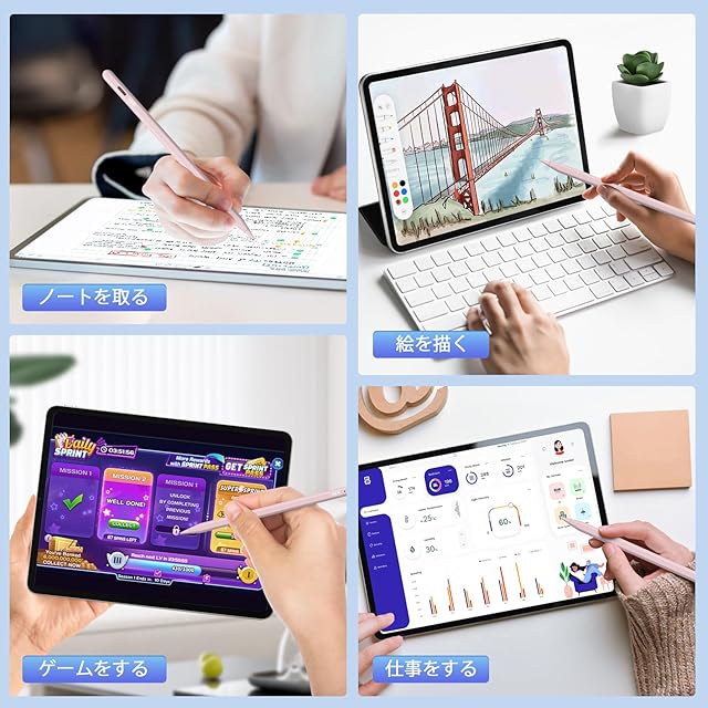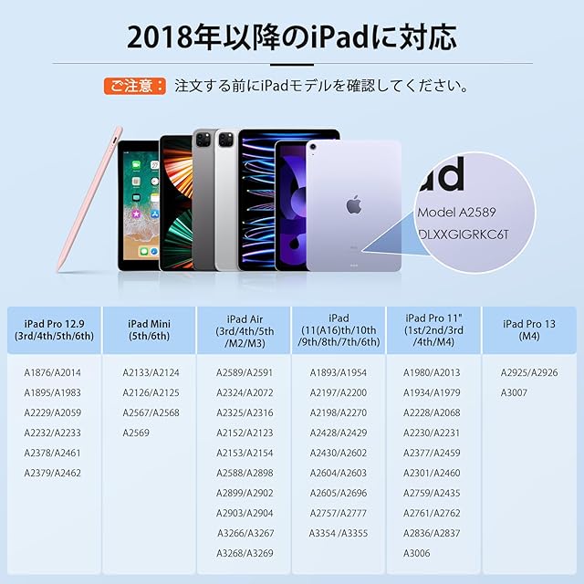 商品名:iPad 用ペンシル 15分急速充電 Mixoo iPadペンシル タッチペン パームリジェクション/高感度/磁気吸着/傾き感知 iPad Pro 11/12.9インチ、iPad Pro 11/13インチ(M4)、iPad 6/7/8/9/10/11(A16)、iPad Air 3/4/5、iPad Air 11/13インチ(M2/M3)、iPad Mini 5/6に対応(ピンク)