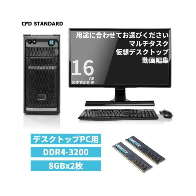 商品名:シー・エフ・デー販売 CFD販売 CFD Standard デスクトップ用 メモリ DDR4 3200 (PC4-25600) 8GB×2枚 288pin DIMM 相性 W4U3200CS-8G
