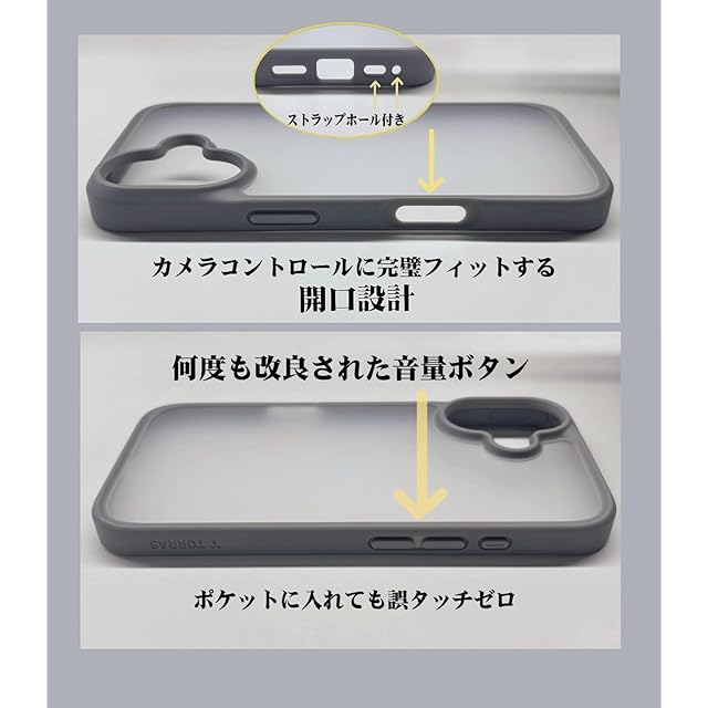 商品名:TORRAS iPhone 16 用 ケース【耐衝撃の新顔・チタングレー】 指紋防止 半透明 黄変防止 米軍MIL規格 耐衝撃 ストラップホール付き ボタン付属 6.1 インチ アイフォン 16用 「Guardian Series」 グレー