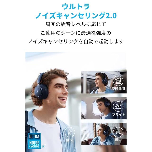 ウルトラノイズキャンセリング 2.0:周囲の騒音レベルに応じてご使用のシーンに最適な強度のノイズキャンセリングを自動で起動します。