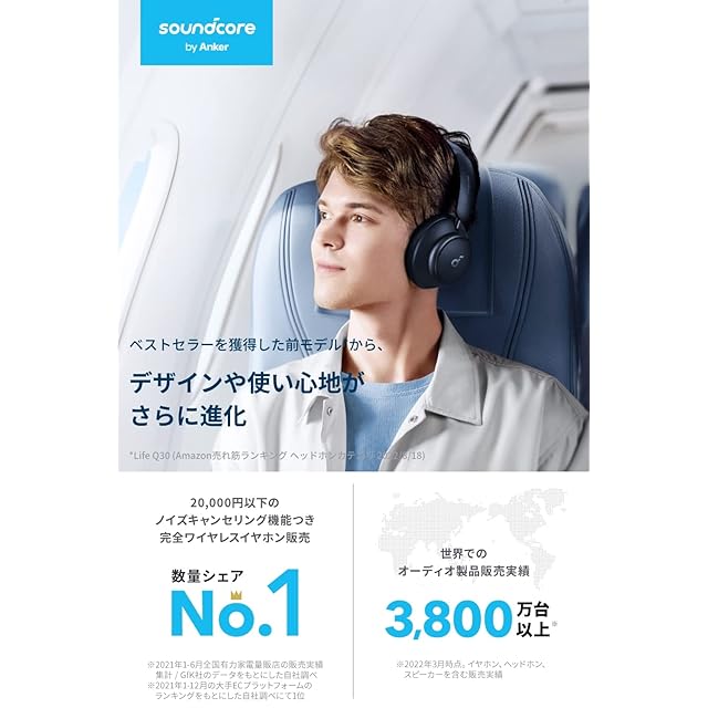 商品名:Anker Soundcore Space Q45(Bluetooth 5.3 ワイヤレス ヘッドホン)【最大65時間音楽再生 / ウルトラノイズキャンセリング2.0 / LDAC/ハイレゾ対応 (ワイヤレス/有線) / マルチポイント対応/外音取り込み/マイク内蔵】ネイビー