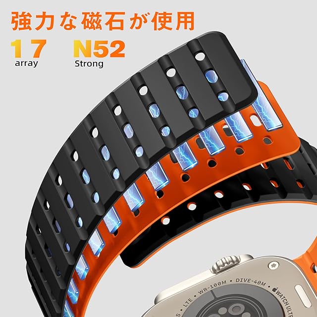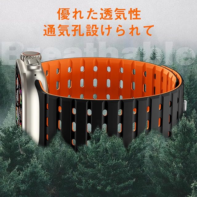 商品名:[Bandletic] アップルウォッチ用の バンド マグネット - 夏 蒸れない スポーツ 42mm 44mm 45mm 46mm 49mm 通気性 防汗 軽量 2色デザイン 交換バンド