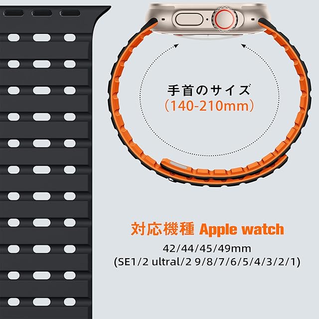 【対応機種】 コンパチブルアップルウォッチ用の Series Ultra2/Ultra/SE2/SE/10/9/8/6/5/4/3/2/1に対応可能。49mm/46mm/45mm/44mm/42mmのサイズに対応しています。手首サイズは140mm-215mmの方に適します。※本製品はバンドのみです、本体は含まれません。