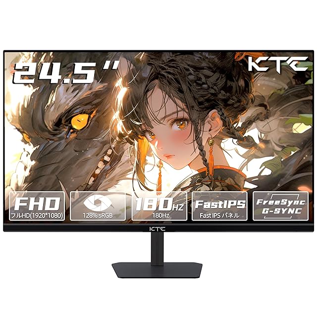 KTC 24.5インチゲーミングモニター Fast IPSパネル フルHD 1080P 非光沢ディスプレイ (180Hz, HDMI 2.0, DP 1.4, 低ブルーライト, フリッカーフリー, Adaptive Sync対応) 三年付き H25T7 | TREND DESIGN 家電専門店