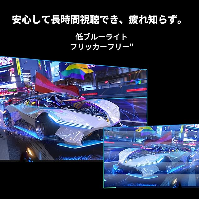 【目に優しい設計】低ブルーライトモードとフリッカーフリー設計により、長時間の使用でも目の疲れを軽減。快適な視聴体験を提供します。