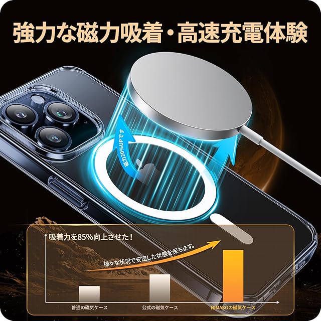 【MagSafe対応・強力な磁力吸着】スマホケース内部に38個の強力なN52マグネットを搭載しており、一瞬でピッタリと高速充電を実現!いくら振っても落ちないので、充電しながらゲームをやっても問題なし!また、ワイヤレス充電やモバイルバッテリー・車載ホルダー・スタンド・リングなど全てのMagSafeアクセサリーにもばっちり対応しています。