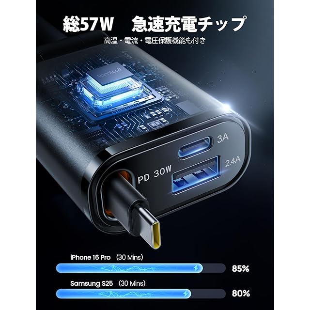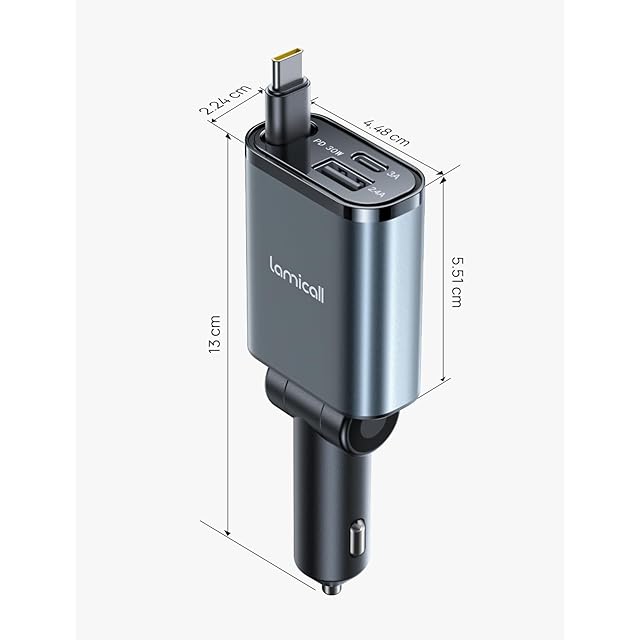 【日本語対応!一年間メーカー】❗❗巻取りケーブル:75cm ❗❗対応車種:DC12V/24V車❗❗サイズ:13cmx2.24cmx4.48cm、重さ:82g❗❗出力:巻き取りType-Cケーブル:30W(PD 5V/3A、9V/3A、12V/2.5A)、USB-A:12W(5V/2.4A)、USB-C:15W(5V/3A)ご購入した日より一年間メーカーサービスを提供いたします。万が一初期不良が発生した場合は、連絡先:アカウントサービス内の「アカウントサービス」→「注文履歴」→「LomicallDirect」→「質問する」或いは説明書に記載されている他の連絡先に、お問合せ下さい。