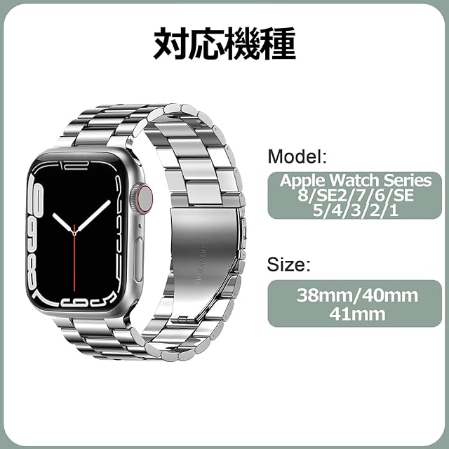 【高品質なステンレス素材】耐腐食性、耐摩耗性、耐酸性の高品質ステンレス素材を採用、耐久性に優れています。また、精密な研磨技術と使いやすくファッショナブルな設計となっており、高級感あふれるApple Watchベルトとなっています。