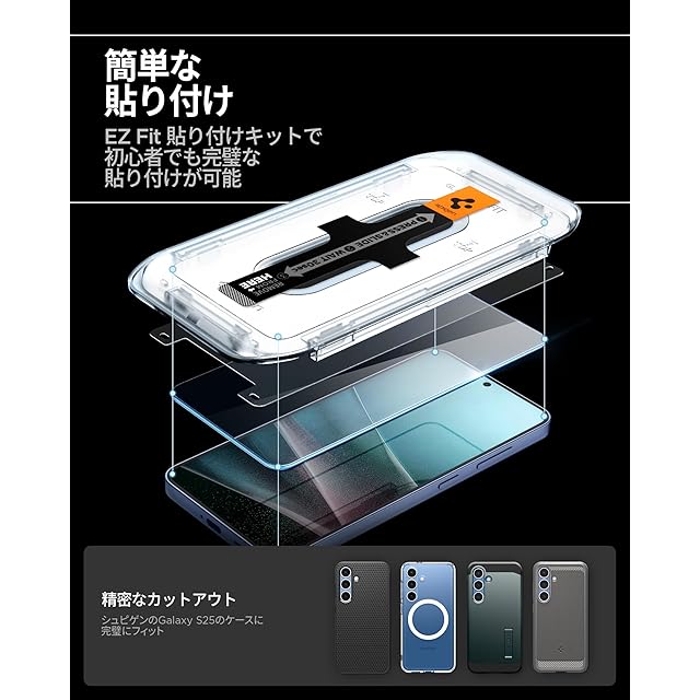 Spigen Galaxy S25 ガラスフィルム Galaxy S25/24 指紋認証対応 9H硬度強化ガラス 貼り付けキット付き ナノコーティング 飛散防止 2枚入 EZ Fit ギャラクシーS25/24 AGL07438 | TREND DESIGN 家電専門店