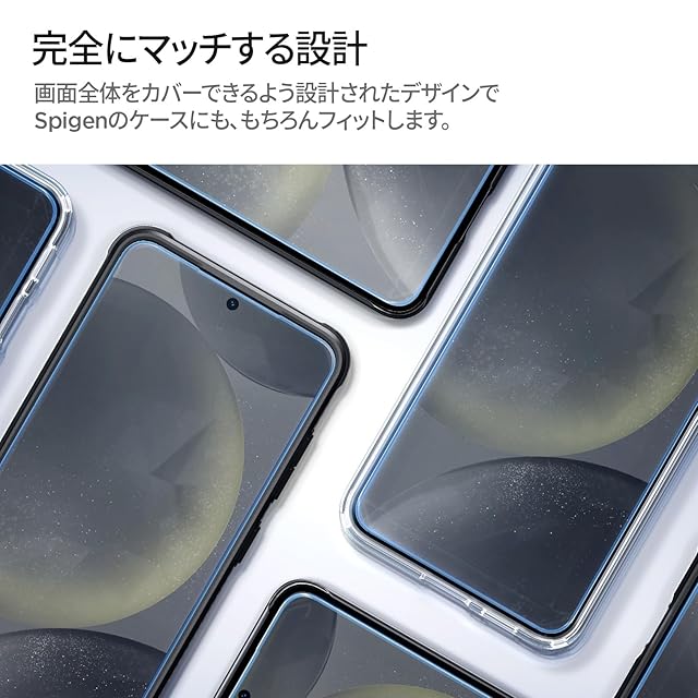 商品名:Spigen Galaxy S25 ガラスフィルム Galaxy S25/24 指紋認証対応 9H硬度強化ガラス 貼り付けキット付き ナノコーティング 飛散防止 2枚入 EZ Fit ギャラクシーS25/24 AGL07438