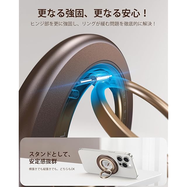 商品名:【2025最高傑作&MagRing Pro】Andobil スマホリング Magsafe マグセーフ リング 落下防止 バンカーリング マグネット【両面マグネット・超强磁力】 スタンド機能&緩まない スマホ リング 360度回転 角度調整可 マグネットリング 薄型 高級素材 携帯リング 磁石 iPhone 16 15 14 13 12 Pro Max Android対応 ブラウン
