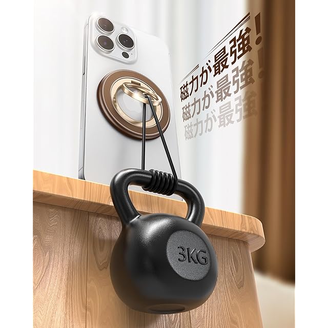 【吸着力3KG・スマホが絶対落ちない】スマホの安全はAndobilが一番大事にしています従来型によくある「磁力が弱くてスマホが落ちやすい」問題に対して、Andobilのプロダクトマネージャーは業界最高レベルのネオジム磁石(N55)を20個も内蔵し、低コスト磁石使用の一般タイプのマグネットリングより吸着力を60倍以上に向上しましたAndobilが選んだ磁石の強さは、普通の磁石(N52)の10倍とされて、3035Nの磁気吸着力があります強力な磁力でどんな状況でもiPhoneを少しも揺らさずにキープすることができ、ずれ落ちる心配なく快適ですまた、伝統的な粘着式スマホリングと違って、マグネットタイプなので取り外しが簡単テープ跡や糊残りを気にせずお使いのiPhoneをきれいな状態でご利用いただけますまた、MagSafe対応ケースであればiPhone 16/15 /14 /13 / 12シリーズにケースをつけたままでも使用できます