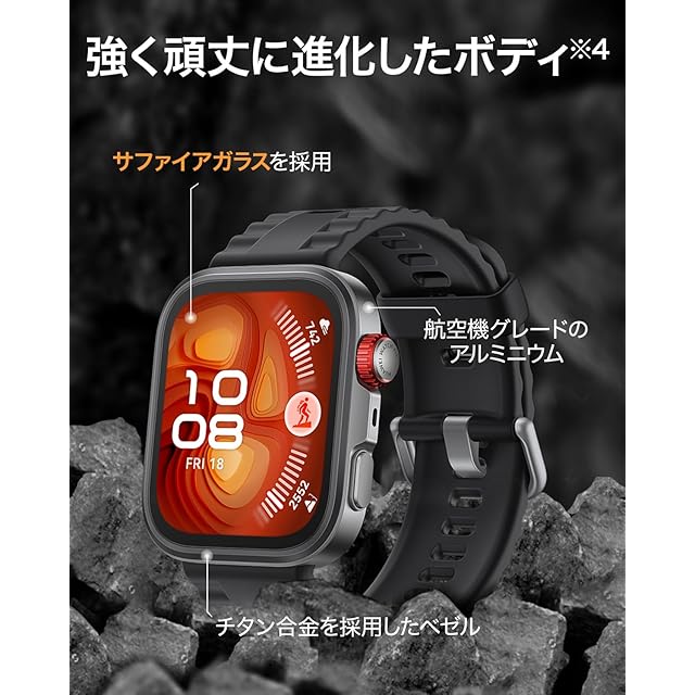 【薄型軽量で頑丈なボディ、アップグレードしたディスプレイ】厚さ約9.3mm、重さわずか約30.4g。スリムなボディに、超強力なチタン合金ベゼルと航空機グレードのアルミニウム合金を採用、1.82インチのディスプレイはサファイアガラスで頑丈にカバーされ、3000nitsの明るさはアウトドアでも鮮明に見えます。
