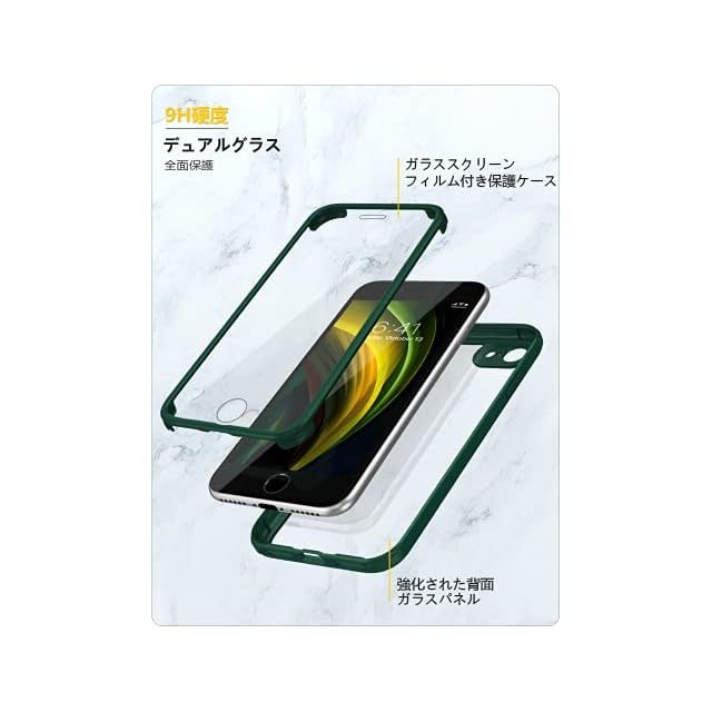 Miracase iPhoneSE用 ケース 第2世代 iPhoneSE2用ケース 第3世代 SE3 iPhone8用ケース 2020 9H強化ガラス 4.7インチ フルカバー 360°保護 緑 | TREND DESIGN 家電専門店
