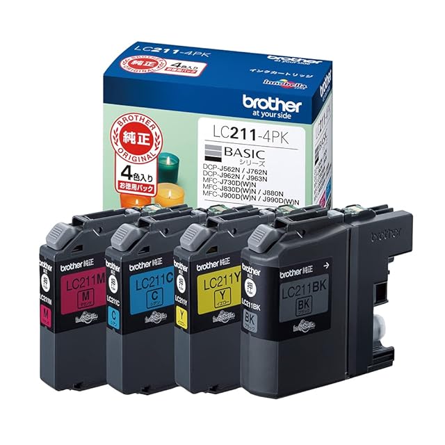 商品名:【ブラザー純正】 ブラザー工業(Brother Industries) インクカートリッジ4色パック(エコパッケージ) LC211-4PK-E 対応型番:DCP-J968N、DCP-J567N、MFC-J887N、MFC-J737DN 他