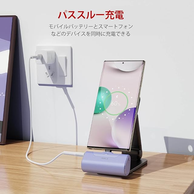 商品名:iWALK 超小型 モバイルバッテリー タイプc 4500mAh USB-C コネクター内蔵 直接充電 コードレス コンパクト かわいい もばじゅう Type-C iphone 16 16pro 15 Max Samsung Galaxy S24 S23 ipad AirPods Android対応 PSE認証済 パープル