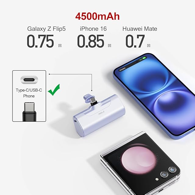 iWALK 超小型 モバイルバッテリー タイプc 4500mAh USB-C コネクター内蔵 直接充電 コードレス コンパクト かわいい もばじゅう Type-C iphone 16 16pro 15 Max Samsung Galaxy S24 S23 ipad AirPods Android対応 PSE認証済 パープル