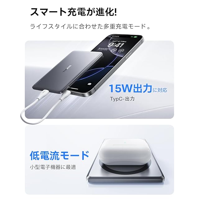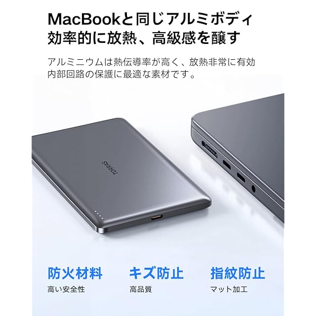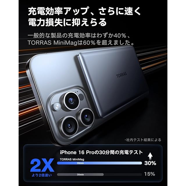 商品名:TORRAS MiniMag モバイル バッテリー MagSafe対応 【Ultra Slim】 軽量 小型 バッテリー マグセーフ 充電器 薄型 ワイヤレス充電器 マグネット Power Bank 5000mAh 急速充電 PSE技術基準適合 iPhone12~16 対応 旅行/出張