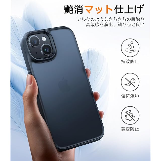 【肌触りで選ぶ、さらさら快適】触れるたびに、幸せな気持ちになれる!背面が艶消しマット質感でまるでベルベットのように優しく心地よいを楽しめ、優しい手触り触るだけで心が癒される。また、iPhone15ケース背面のサラサラ感と側面のグリップ感が絶妙に組み合わさっていて、エッジ部に無段差デザインでどこまでもなめらか!