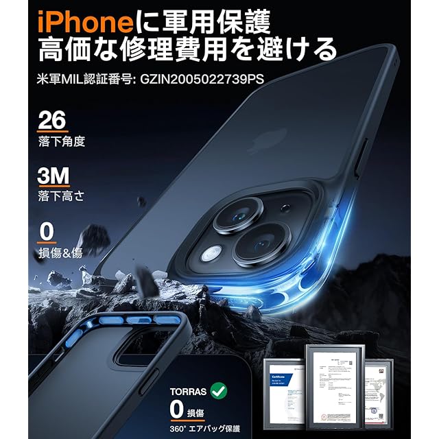 【2025アップグレード・軍用レベル保護力】iPhone 15 用 ケース! 堅牢性には徹底的にこだわって開発しているケースが、特許全面保護システムが年々更新し、高い耐衝撃性を誇り、3Mの高さ、26回、それぞれ違う角度でコンクリートに落下させても本体は綺麗に無傷!iPhone15 を守り抜く万全の備え!※米軍規格認証番号:No.GZIN2005022739PS