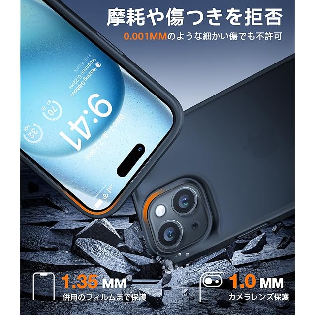 【カメラまで高保護・細部まで傷対策】カメラにヒビ!?修理料金が大変ではないか!高価値なカメラ向けに設計され、特許「カメラエアバッグ」を進化搭載、衝撃吸収性も200%アップ、背面カメラを完璧に守れる!また、縁高設計で液晶画面とカメラレンとよ1.55mm高め、併用のフィルムまでも保護できる。写真を撮るたびに全方位から安心感を伝えて、iPhone 15 スマホをしっかりとガードする。(便利なストラップホール付き)
