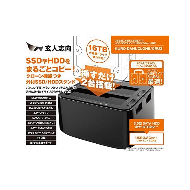 玄人志向 SSD/HDDスタンド 2.5型&3.5型対応 SSDやHDDをまるごとコピー! エラースキップ/クローン機能つき 最大16TB対応 KURO-DACHI/CLONE/CRU3 | TREND DESIGN 家電専門店