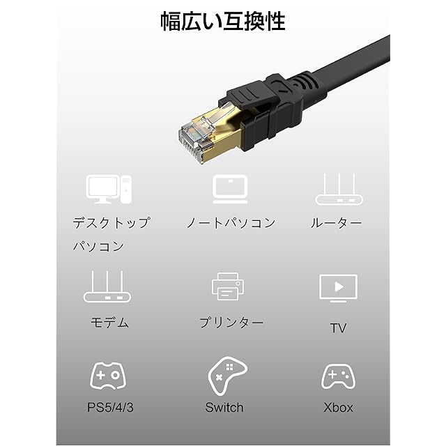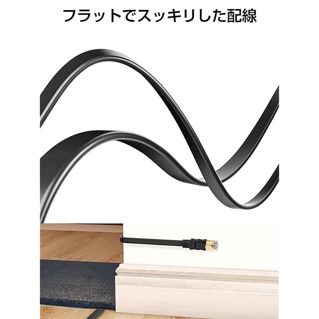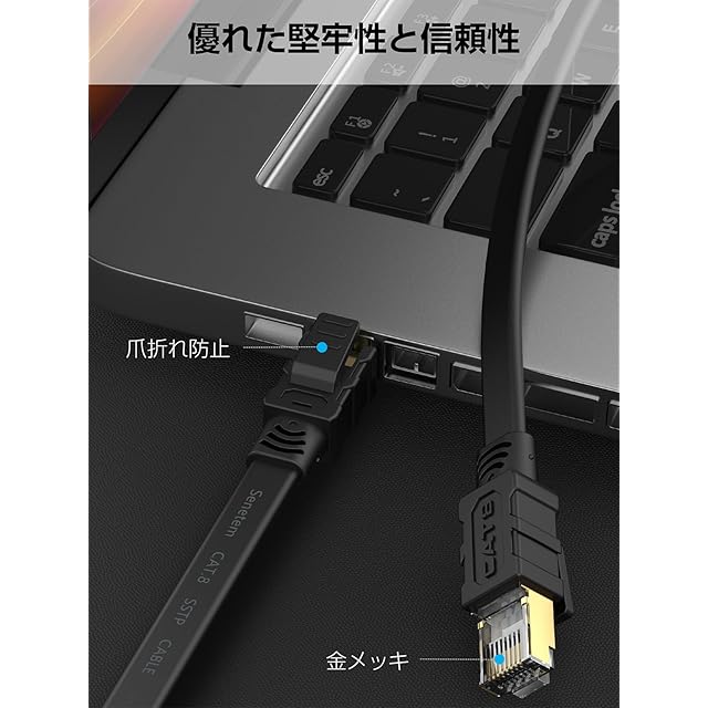 商品名:Senetem LANケーブル 30m CAT8 40Gbps/2000MHz カテゴリー8 超高速インターネットケーブル CAT8準拠 フラットケーブル RJ45 ツメ折れ防止 ブラック モデム ルータ PS3 PS4 PS5 Xbox等に対応