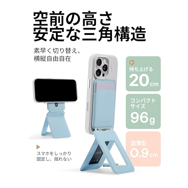 【あらゆる場面に寄り添う!変幻自在】特許取得の一体型折り畳み構造で、1秒でサッと展開。スマホスタンドの高さは、一般的な書籍とほぼ同じ20cmまでスマホをキープ!ビデオ会議、リモートワーク、料理中など、様々なシーンでスマホを安定して支えます。写真撮影、ライブ配信、メッセージ確認しながらの充電など、あなたの毎日の生活を快適にサポートする、頼れる万能アイテムです。