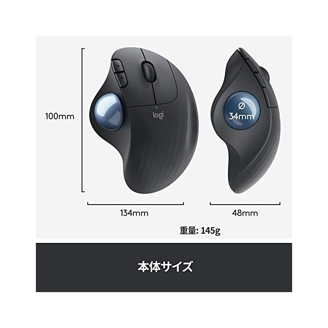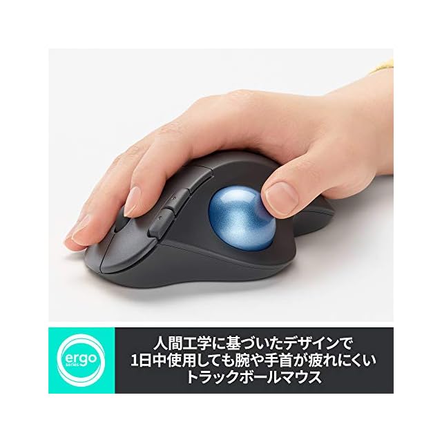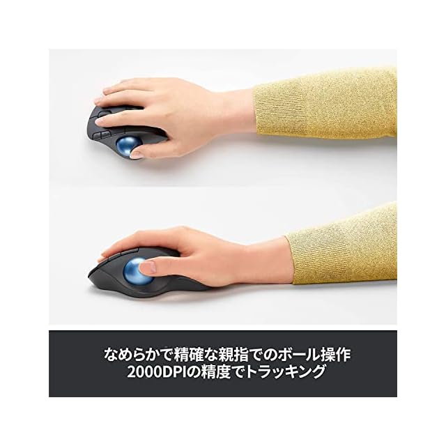マウスの位置は固定したまま本体のボールを転がしてカーソル操作 ロジクール定番のトラックボールマウス!