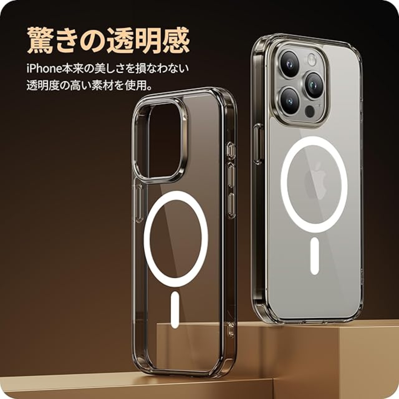 NIMASO ケース MagSafe対応 iPhone15Pro 用 クリア 保護ケース 黄変防止 マグネット搭載 マグセーフ対応 耐衝撃 米軍MIL規格 SGS認証 PC背面 傷つけ防止 薄型 バンパー ワイヤレス充電対応 ストラップホール付き アイフォン15プロ(6.1インチ)対応 スマホケース ブラウン(氷星シリーズ)NSC23J830 | TREND DESIGN 家電専門店