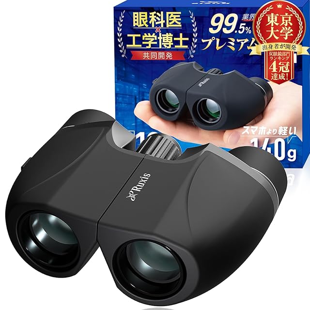 商品名:【眼科医x東大卒の工学博士が開発】 双眼鏡 ライブ用 10倍 オペラグラス コンサート用 スポーツ観戦用 超軽量 140g 【日本ブランド】 Ruxis (ブラック)