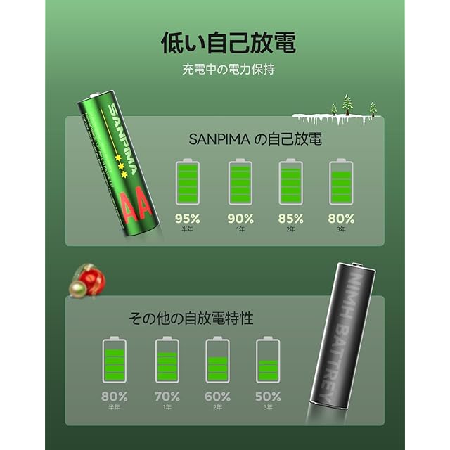【大容容量と1.5ボルト電圧出力】SANPIMA充電式のAAリチウム電池は、3000mAhの大容量と高いエネルギー密度を持ち、多くの充電・放電サイクルを行っても長持ちします。電力が完全になくなるまで、1.5ボルトの定常出力を保ち、常に機器を最適な状態に保ちます。