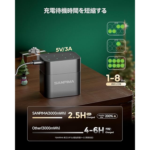 SANPIMA 単3形リチウム充電池8本 1.5V 大容量3000mWh/2000mAh 急速充電器付き 約1600回充電可能 1-8本同時充電 2.5時間充電 自然放電抑制 | TREND DESIGN 家電専門店