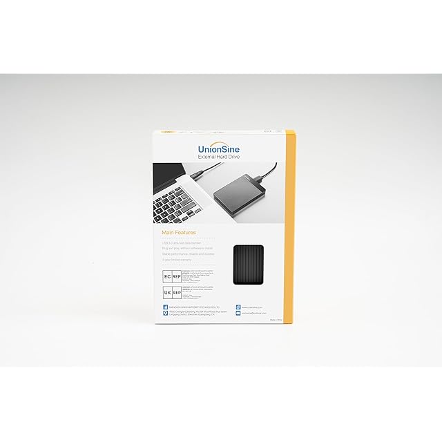 製品情報<br>メーカー: UnionSine<br>容量: 120gb / 160gb / 250gb / 320gb / 500gb / 750gb / 1tb<br>ボディカラー: ブラック<br>外形寸法: 7.5(幅) x 1.9(高さ) x 10.5(奥行)cm<br>重量:136g<br><br>1進級版<br>ブラシ仕上げの表面とシームレスな接続により手のひらに持ち運び楽々な感じを与える。お個人的なライフスタイルに合った様々な容量とスタイリッシュなカラー。<br>ご注意<br>異なるOSの仕様を使うので、パソコンで認識される記憶容量は規格値より小さい可能性もあります。(1TB=1000GB, 1GB=1000MB, 1MB=1000KB計算)<br>120GB≈111GB<br>160GB≈149GB<br>250GB≈232GB<br>320GB≈298GB<br>500GB≈465GB<br>750GB≈698GB<br><br>2超高速データ転送<br>USB3.0とUSB2.0対応製品同士の組み合わせの場合、超高速転送速度を実現します。<br>理論的には、USB3.0は最大5.0ギガビット/秒(625 MB /秒)でデータを転送でき、USB 2.0の約10倍の速さです<br><br>3システムとの互換性<br>デフォルトでは、このポータブルハードドライブのフォーマットはExFATです。<br>それはWindows / Mac / Linux / Android 等OSに適用できます。<br>中古なデバイスには、再フォーマットが必要なものがあります<br><br>4簡単接続<br>他のソフトウェアを使用する必要はありません。 USBをパソコンに接続後LEDインジケータが光りす。データ転送の時はLEDインジケータが点滅します。お使い状態が一目明瞭です。<br><br>5超薄型ポータブル<br>ポケットサイズ、超薄型でポータブル。表面にスクラブ処理で、指紋を防ぐ、滑り止め効果も抜群。<br><br>6内容物<br>1xポータブル外付けハードドライブ、1x usb3. 0ケーブル、1xユーザーマニュアル;<br>3年間のメーカーとフレンドリーな顧客サービスを提供しています」