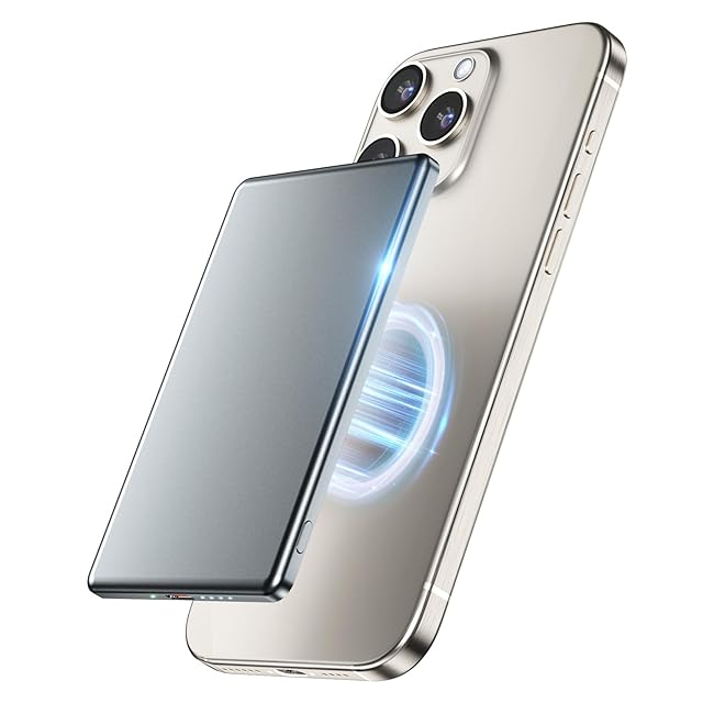 KEEZING 超薄型 モバイル バッテリー MagSafe対応 軽量 小型 8000mAh ワイヤレス充電器 マグネット式 15W急速充電 PSE認証済み iPhone 16/15/ 14/ 13/ 12シリーズ 旅行/出張/災害用 機内持ち込み可