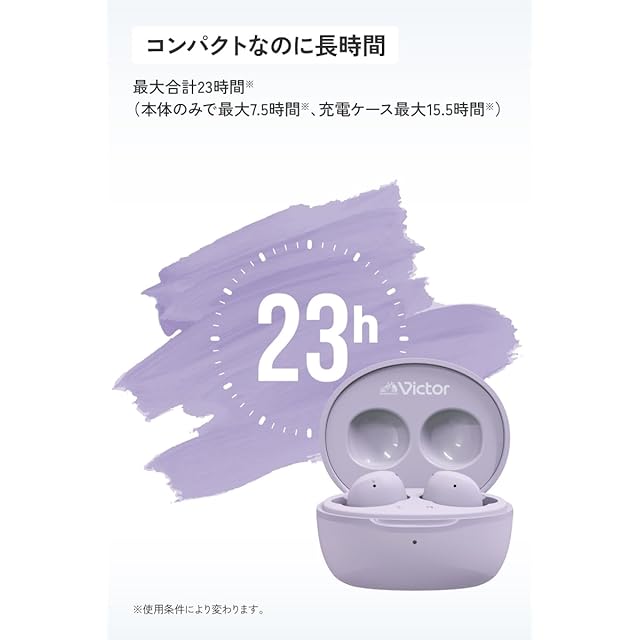 【トレンドを意識した5色のカラーバリエーション】 カラーバリエーションはトレンドを意識したピンク、パープル、グリーンに、ベーシックカラーのブラック、ホワイトを加えた5色をラインアップします。また、イヤホン本体と充電ケースには、Victorブランドの象徴である「犬のマーク」をデザインしています。