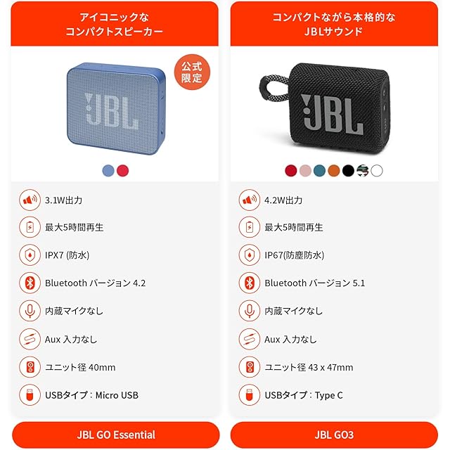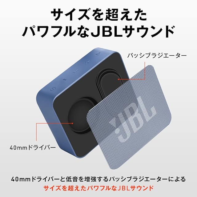 「JBL GO」シリーズは、2015年の初代「JBL GO」発売以来、世界各国で多くのお客様にご愛顧いただき、全世界累計で4,300万台の販売数を誇る大人気のポータブルBluetoothスピーカーシリーズ。その最新モデルである「GO Essential」はアイコニックなロゴを前面にあしらい、ポケッタブルサイズとJBLらしいパワフルなサウンドを両立した最新モデルです。 音質面では、手のひらサイズで177gという、超軽量かつ持ち運びに便利なポケッタブルサイズ設計でありながら、40㎜径フルレンジスピーカー×1基とパッシブラジエータ―を装備。サイズを超えた迫力のあるJBLパワフルサウンドをお楽しみいただけます。 IPX7※防水性能も装備しているので、海辺やプールサイドはもちろん、キッチン周りやお風呂場などでも安心してお使いいただけます。