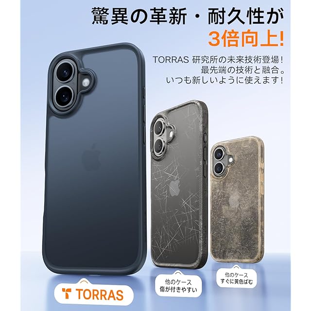 商品名:TORRAS iPhone 16 用 ケース【ベルベット感触・衝撃 100% 吸収】 指紋防止 半透明 黄変防止 米軍MIL規格 耐衝撃 ストラップホール付き レンズ保護 ボタン付属 6.1 インチ アイフォン 16 用 「Guardian Series」 ブラック