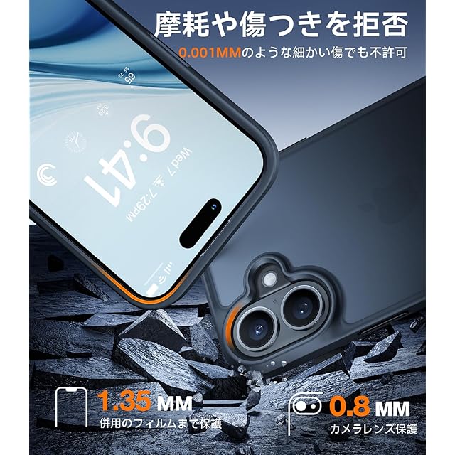 【カメラまで高保護・細部まで傷対策】カメラにヒビが入る!?修理料金が高額だ!高価値なカメラ向けに設計されたこのケースは、特許「カメラエアバッグ」を進化させて搭載し、衝撃吸収性も200%アップし、背面カメラを完璧に守ることができる。また、縁高設計により、ケースの縁は画面より1.2mm、カメラレンズより1.5mm 高くなっており、貼付けたフィルムまでもしっかり守れる。 「※便利なストラップホール付き」