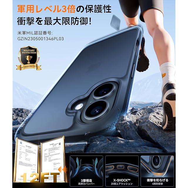【2025年アップグレード・軍用レベル保護力】堅牢性に徹底的にこだわって開発されたケースは、特許全面保護システムが年々更新され、高い耐衝撃性を誇り、3メートルの高さから、26 回コンクリートに落下させても本体はきれいに無傷な状態を保つ!iPhone 16 用の Guardian Series はスマホを守り抜く万全の備えを提供する。 ※米軍規格認証番号:No.GZIN2305001346PL03 「ご注意:本製品には内蔵の磁石リングがないため、MagSafe充電に対応しない可能性があります。」