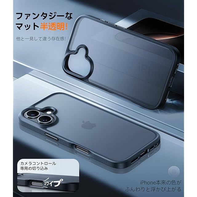 iphone 16 用 ケース iphone16ケース アイフォン16用 ケース いphone16用 ケース アイホン16用 ケース シンプル 衝撃吸収 耐衝撃 マット半透明 サラサラ 滑り止め 指紋防止 汚れ防止 黄ばみ防止 変色防止 黄ばみなし ストラップホール付き カメラコントロールホール カバー